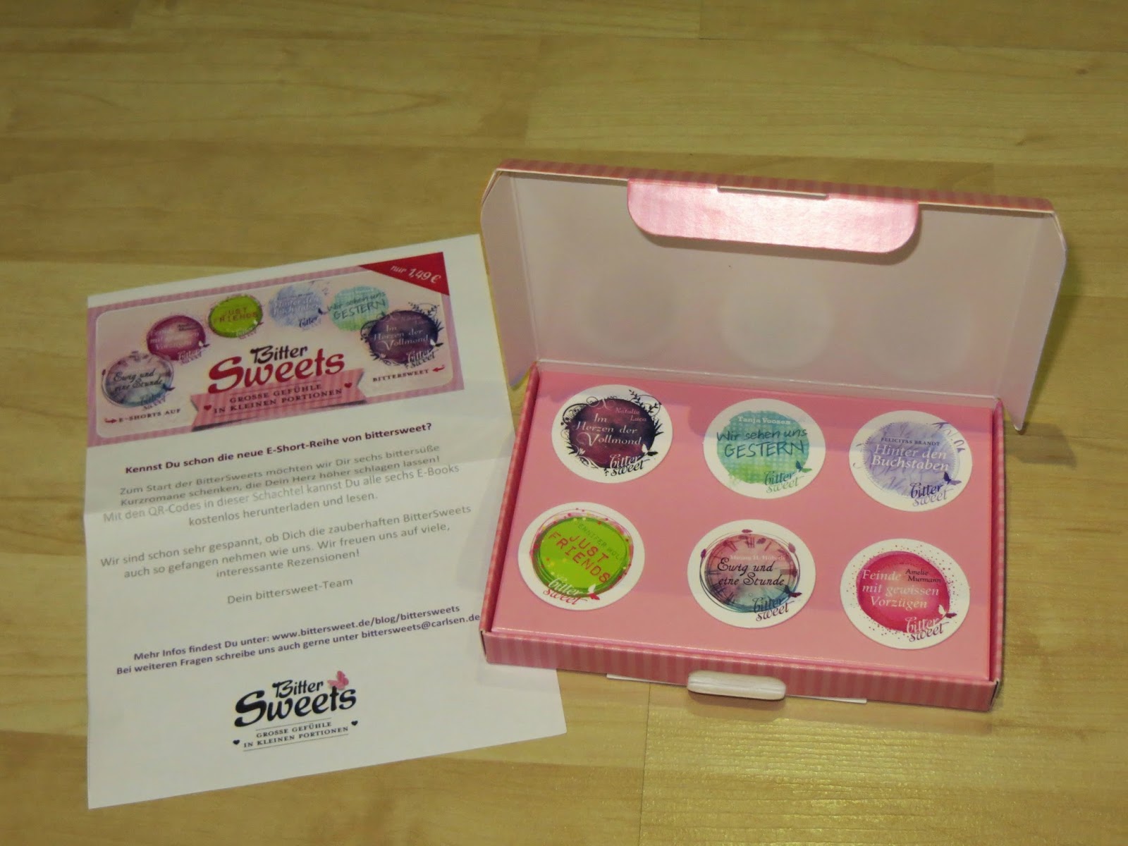 Diese tolle Schachtel enhält die neuen 6 E-Shorts aus dem Impress Verlag. Für nur 1,49 € erhält man sechs bittersüße, abgeschlossene Kurzromane von bekannten Impress-Autorinnen, die man ganz einfach aufs Handy oder Tablet laden und dann in der Bahn, im Bus oder auch zu Hause lesen kann.