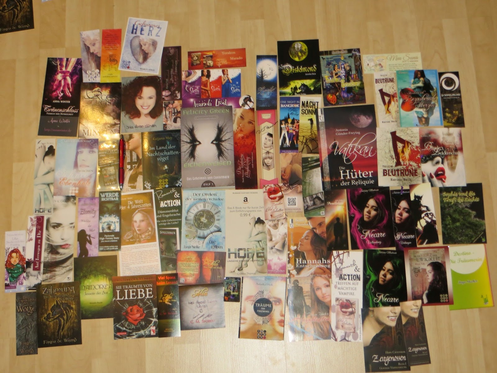Doch natürlich enthält jedes Paket nicht nur die Bücher sondern auch ganz tolle Lesezeichen, Postkarten, Flyer und manche haben Kugelschreiber, Magnete, Blöcke, Buttons, DIN-A-4-Poster, Lippenpflegestifte oder Sticker mit drin.
