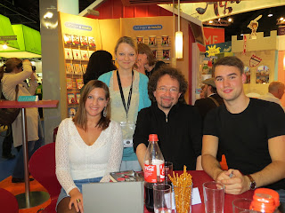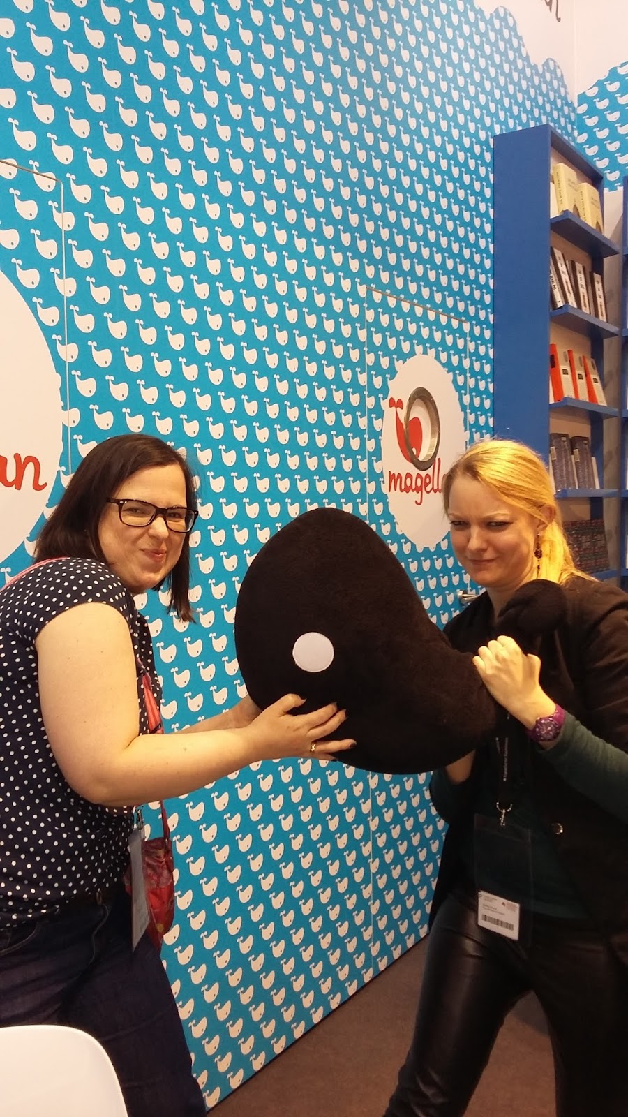 Dann ging es eh schon auf 18.00 Uhr zu und ich traf mich mit Sharon und Jack am Stand des Magellan Verlages, wo Sharon und ich noch ein lustiges Fotoshooting machten: